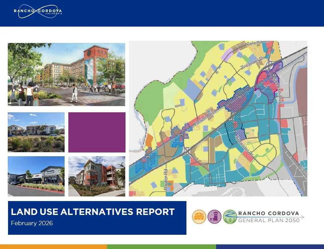 Join us for our next engaging community workshop on February 26, 2026 from 5:30-7:30pm at Rancho Cordova City Hall where your ideas will help shape Rancho Cordova for decades to come. Together, we’ll explore exciting new land-use opportunities—from reimagining underused spaces like office parks, to creating vibrant places where people can live, gather, and discover. We hope to see you there! See more details HERE and RSVP below to help us plan for the event (an RSVP is not required to attend)